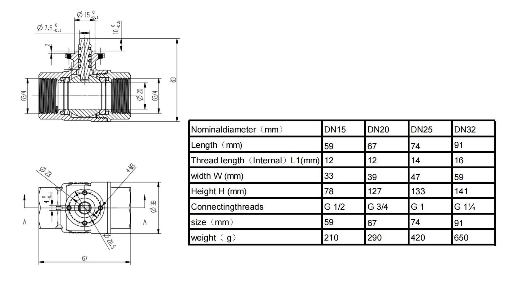 Size: 1/2″, 3/4″, 1″,1 1/4″, 1 1/2″, 2″(DN15~DN50)