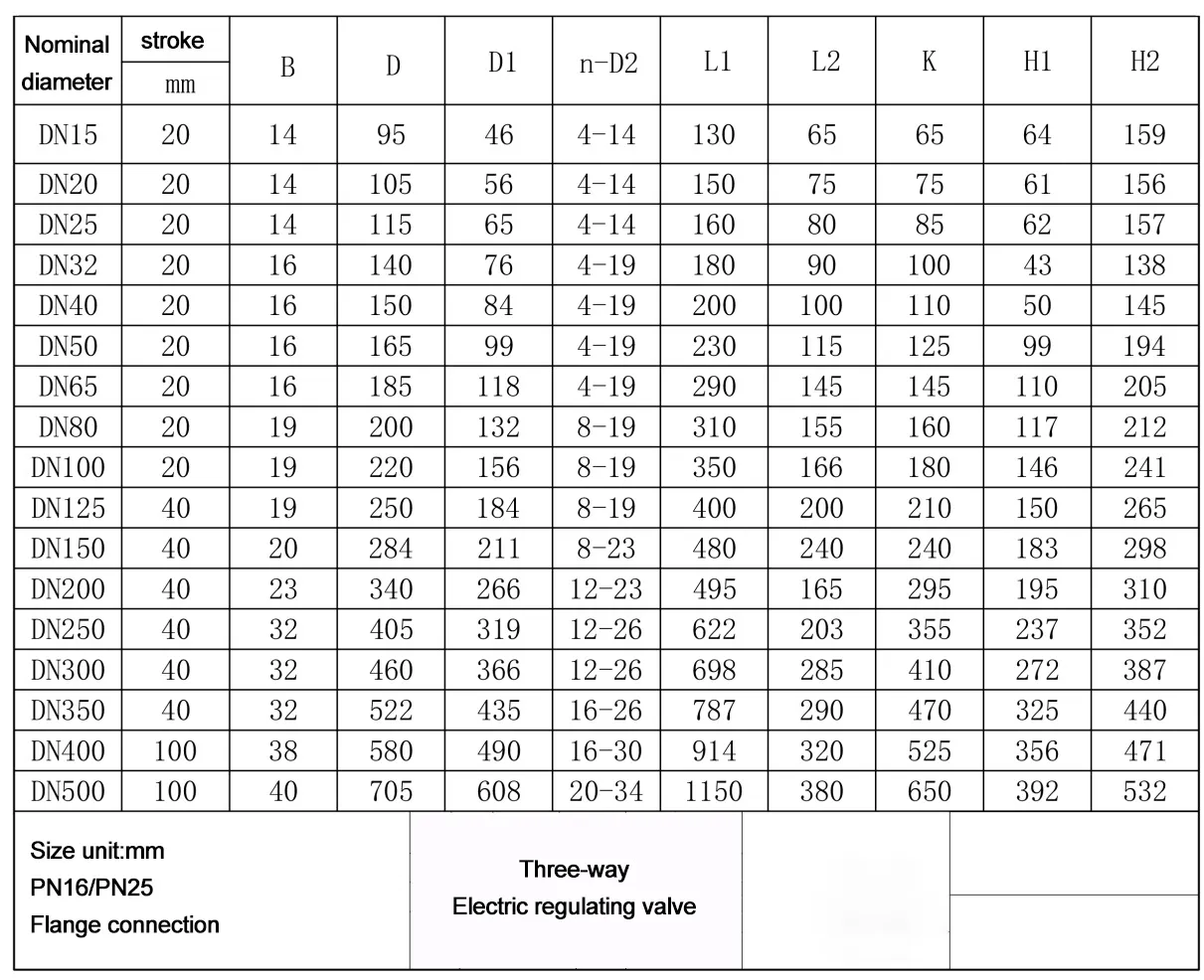 Stroke: DN40 – DN100 20mm,DN125 – DN350 40mm