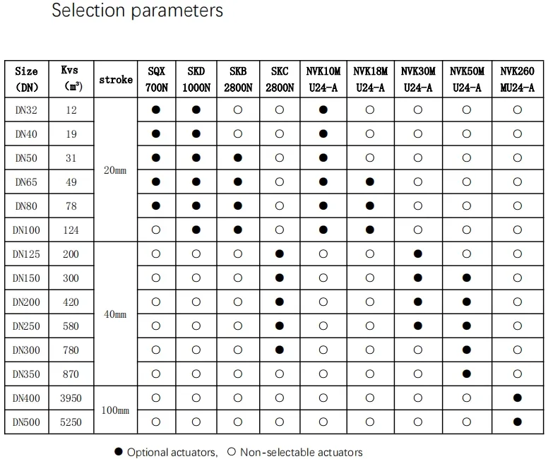 Stroke: DN40 – DN100 20mm,DN125 – DN350 40mm