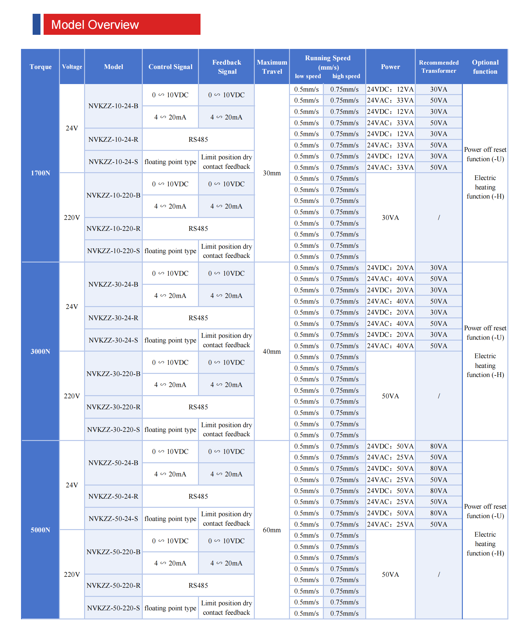 | Control mode | Switch Control, Three-bit Floating Point, 0-10V 4-20MA, RS485 |